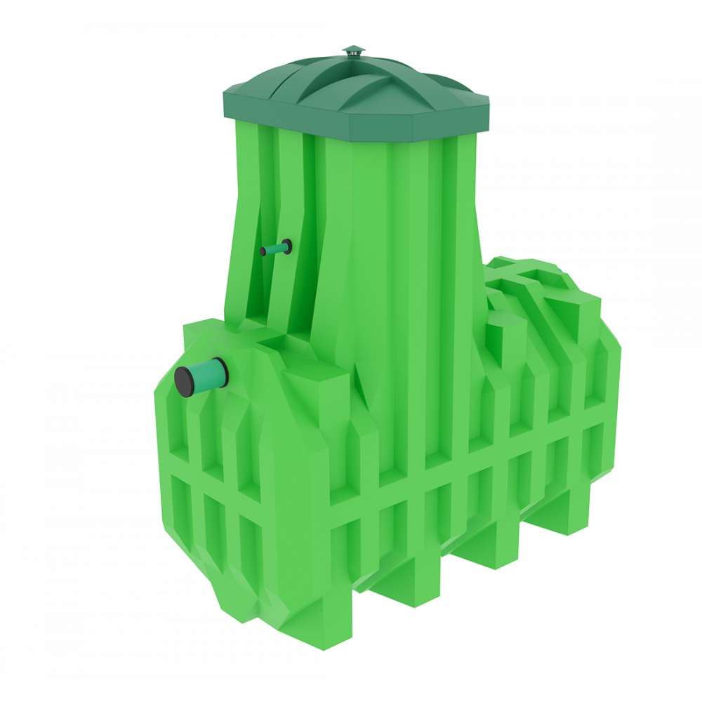 длина: 211,5 см, высота: 216 см, ширина: 100 см, производительность: 1 300 л/сутки, общий объем: 2 000л, тип: станция очистки, материал: LLDPE, число пользователей: 6, пиковый сброс: 300 л/час, энергопотребление 1,5 кВт/сут